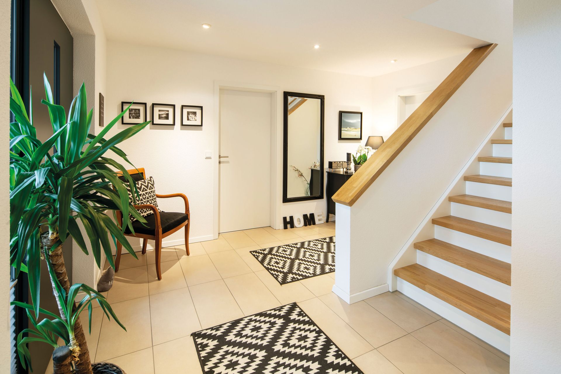 Die Raumaufteilung ist klar und logisch, Wege sind kurz, Funktionen eindeutig zugeordnet. Trotz der Größe wirkt das Haus nicht weitläufig oder unübersichtlich, sondern ruhig und strukturiert. Auch technische Bereiche und Stauraum sind funktional integriert, da bewusst auf einen Keller verzichtet wurde.