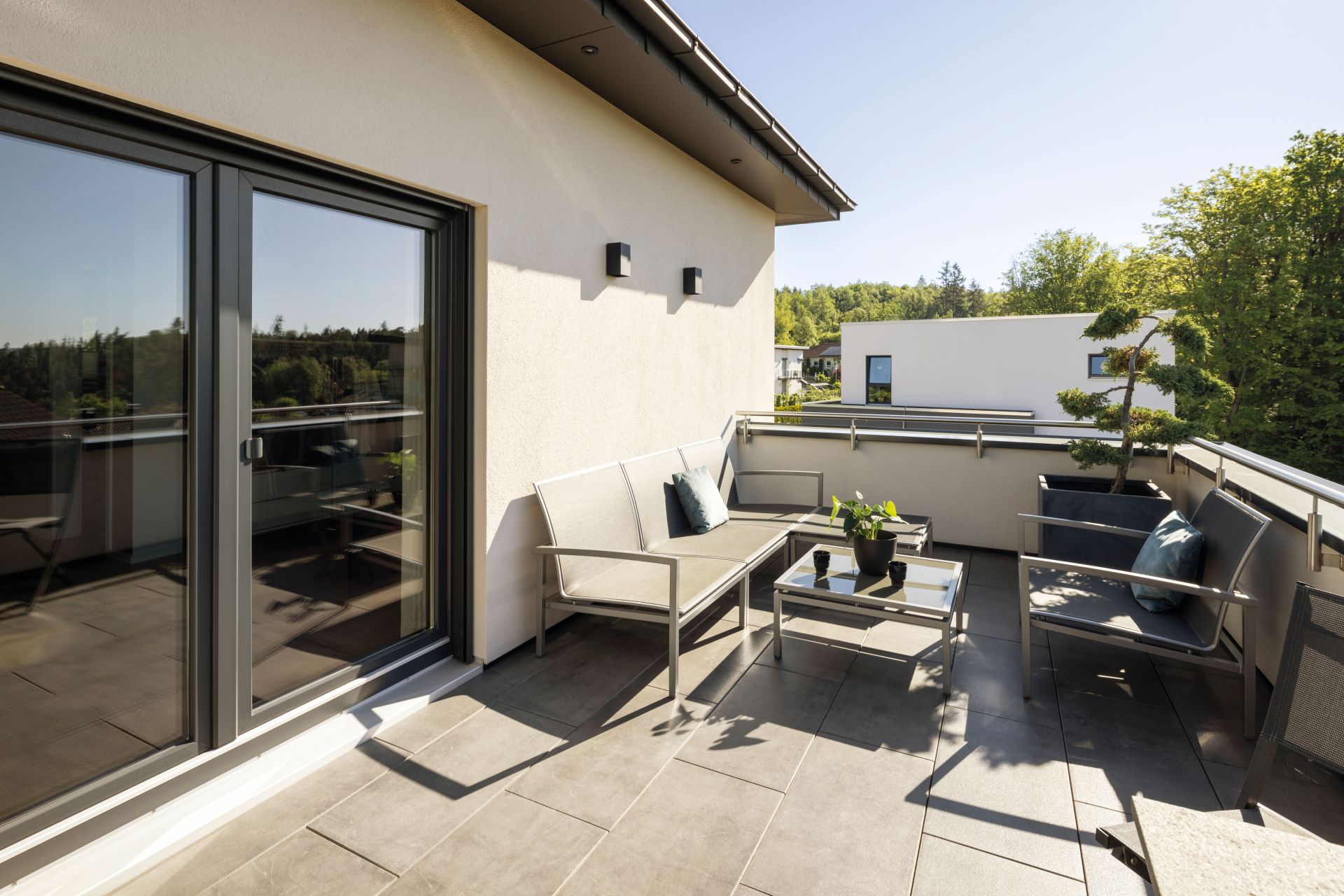Bauhaus mit Loggia am Hang – wohnen zwischen Stadt und Wald