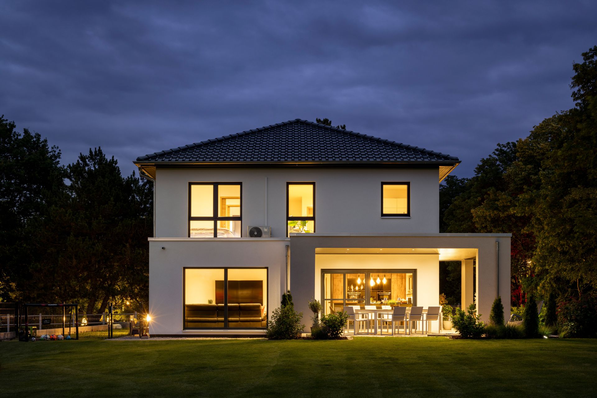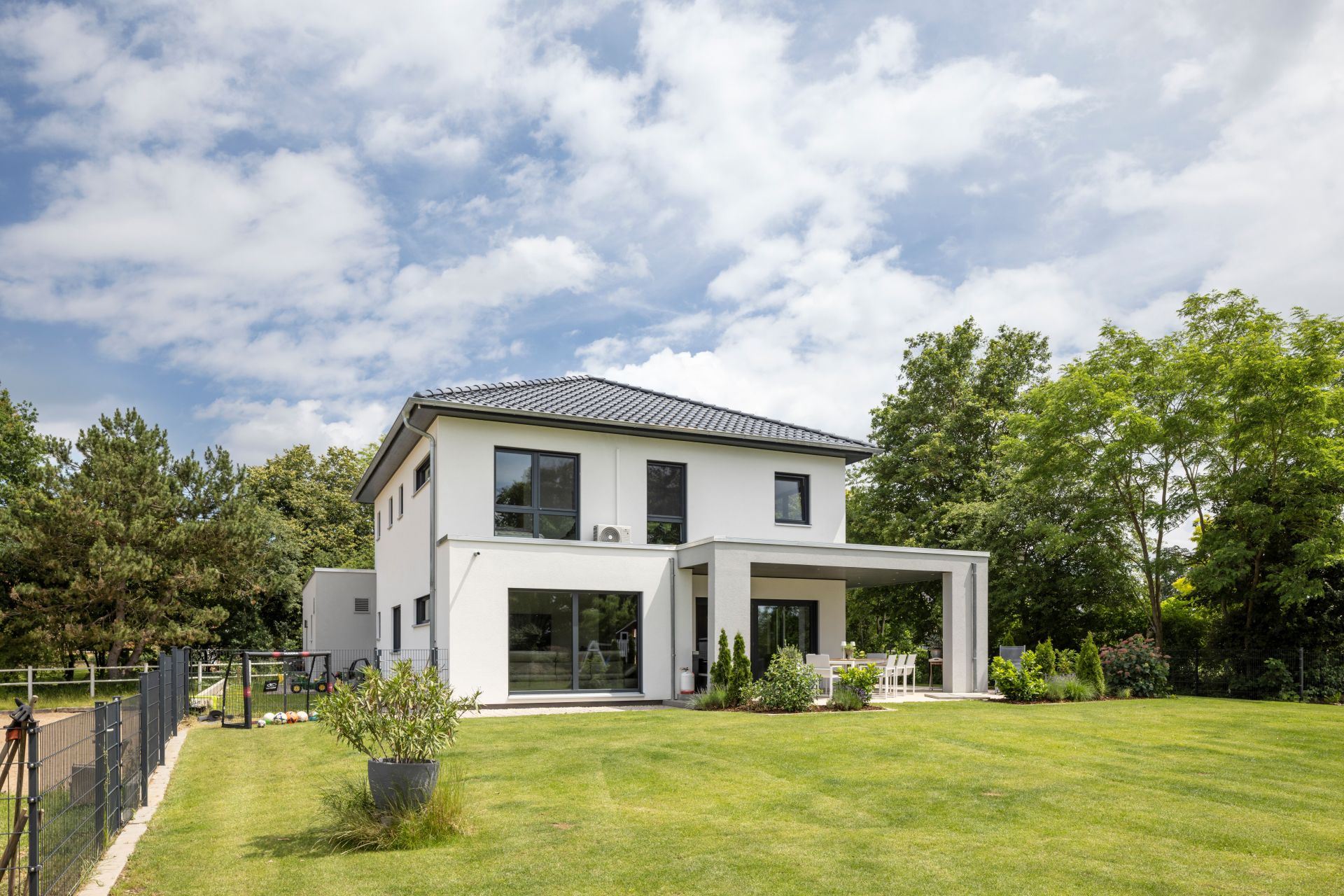 Stadtvilla mit überdachter Terrasse – wohnen mit Blick ins Grüne