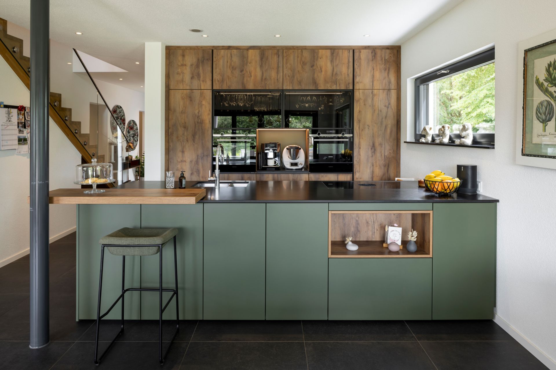 Unsere Architekten unterstützen Sie bei der Planung Ihres persönlichen Traumhauses – auf Wunsch mit überdachter Terrasse, Massivholztreppe mit Glasgeländer und offener Küche mit Wohnbereich.