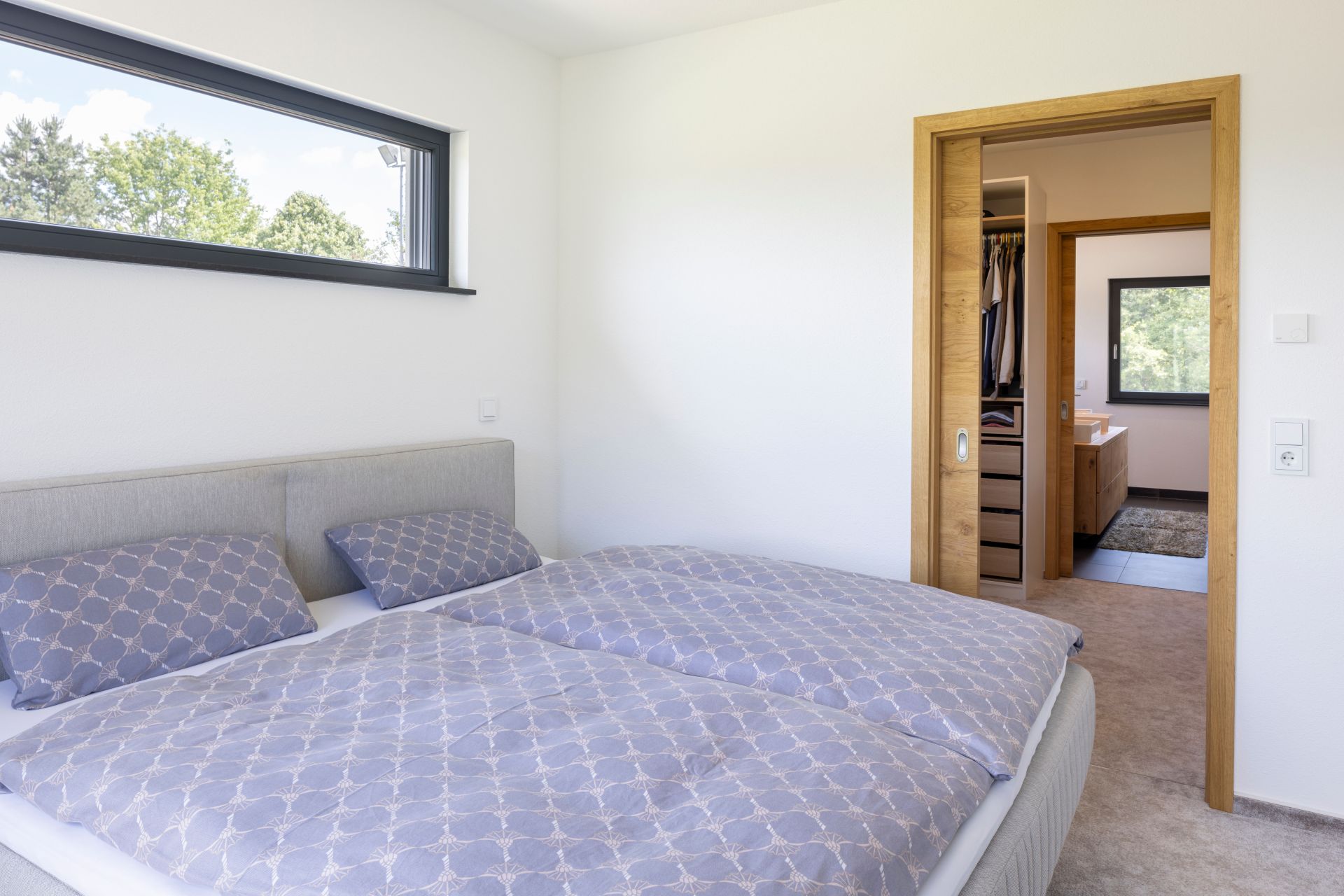 In der Planungsphase informierten sich die Bauherren intensiv und besuchten verschiedene Musterhausparks. Auch andere Anbieter standen zunächst zur Diskussion. Ausschlaggebend für FingerHaus war schließlich die Kombination aus handwerklicher Qualität, freier Planbarkeit und klaren Abläufen. Besonders die Werksbesichtigung hinterließ einen bleibenden Eindruck. Ebenso überzeugend war das Prinzip, alle Schritte von der Planung bis zum schlüsselfertigen Ausbau aus einer Hand zu koordinieren. Die strukturierte Bemusterung sowie ein fester Ansprechpartner gaben Sicherheit und erleichterten viele Entscheidungen. Für die Bauherren war klar, dass sie sich auf Termine und Absprachen verlassen konnten – ein Aspekt, der im weiteren Bauverlauf immer wieder bestätigt wurde.