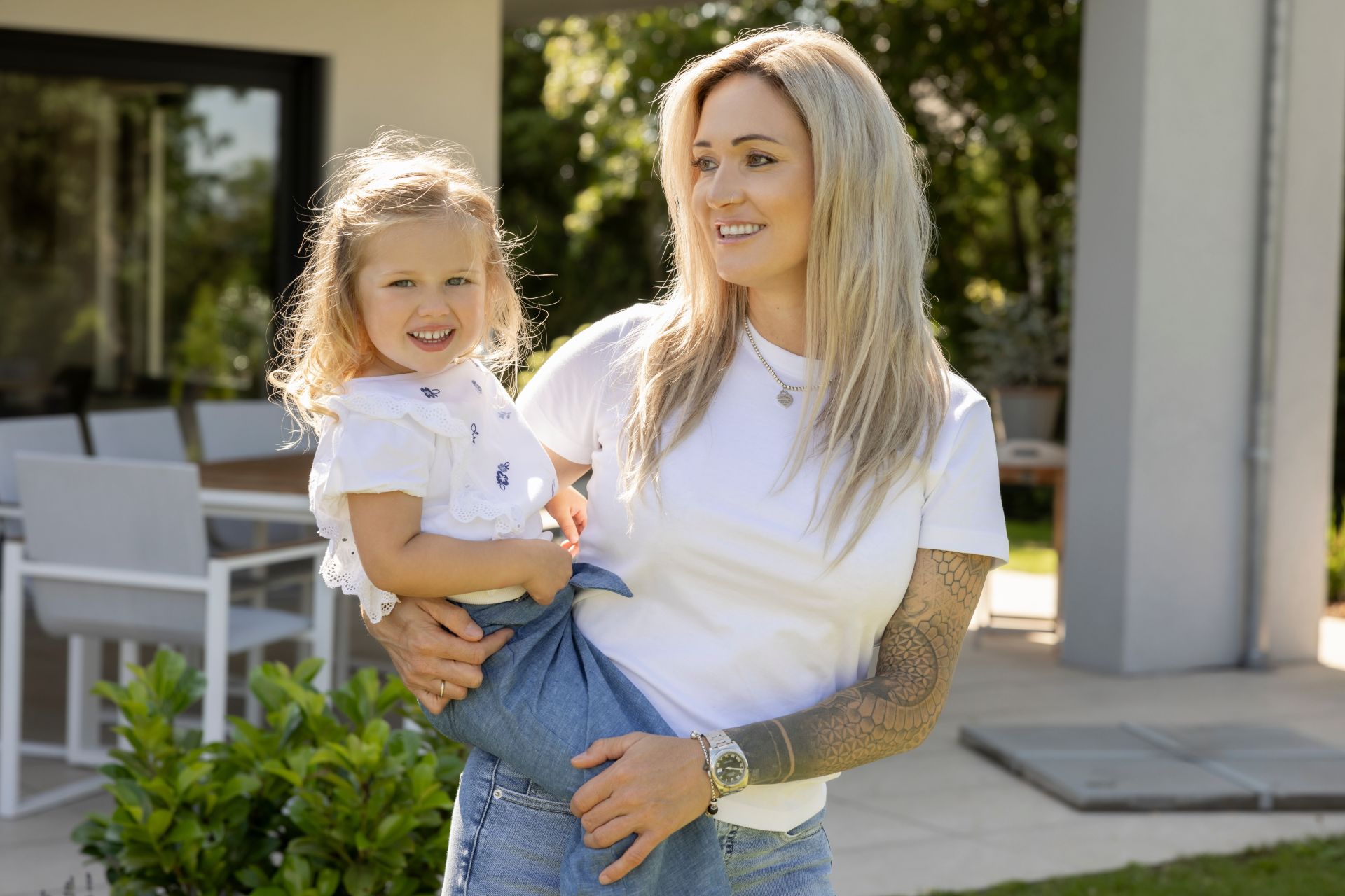 Der Wunsch nach einem eigenen Zuhause war bei Familie Ordner schon lange präsent. Mit der wachsenden Familie wurde er konkreter und mit ihm die Frage, wo und wie gebaut werden sollte. Die Entscheidung fiel auf ein Grundstück im direkten familiären Umfeld, eingebettet in eine ruhige, ländliche Umgebung. Die Nähe zu den Eltern, kurze Wege und das Leben im Grünen spielten dabei eine zentrale Rolle. „Wir haben hier einen eigenen kleinen Pferdehof. Meine Eltern wohnen gleich nebenan“, beschreibt die Bauherrin die besondere Situation. Dass es ein Neubau werden sollte, stand früh fest. Wichtig war ein Haus, das ausreichend Platz für den Familienalltag bietet und zugleich Raum für berufliche Nutzung lässt.