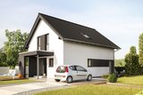 Typisch für dieses Konzept: die geradlinige, kubische Außengestaltung mit Flachdach. Große Glasflächen lockern die strenge Gestaltung bewusst auf und bringen Licht und gute Laune ins Haus.