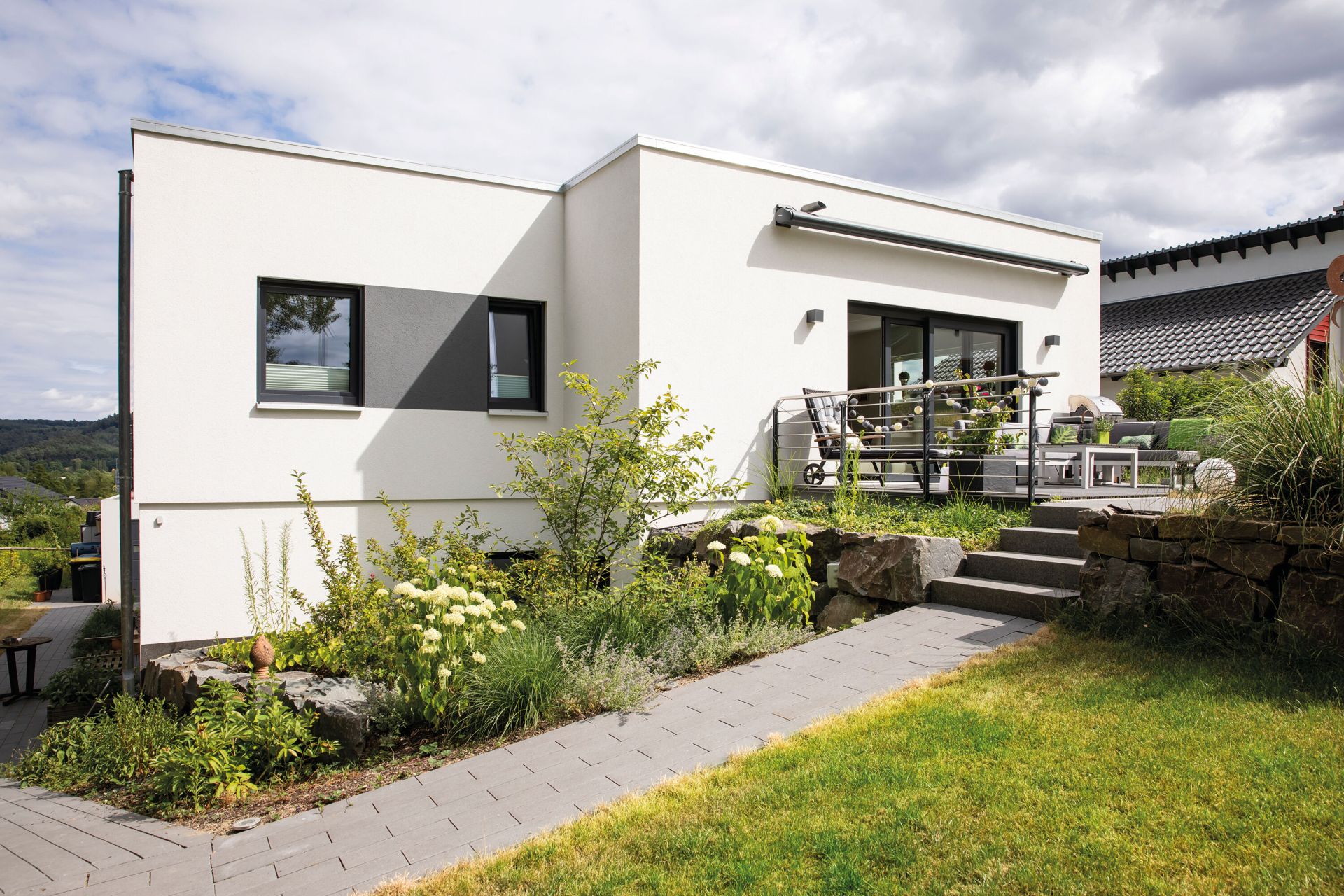 Ein frei geplantes Architektenhaus – mit 274 m² Wohnfläche, Flachdach, Balkon und individuellen Details in Hanglage.