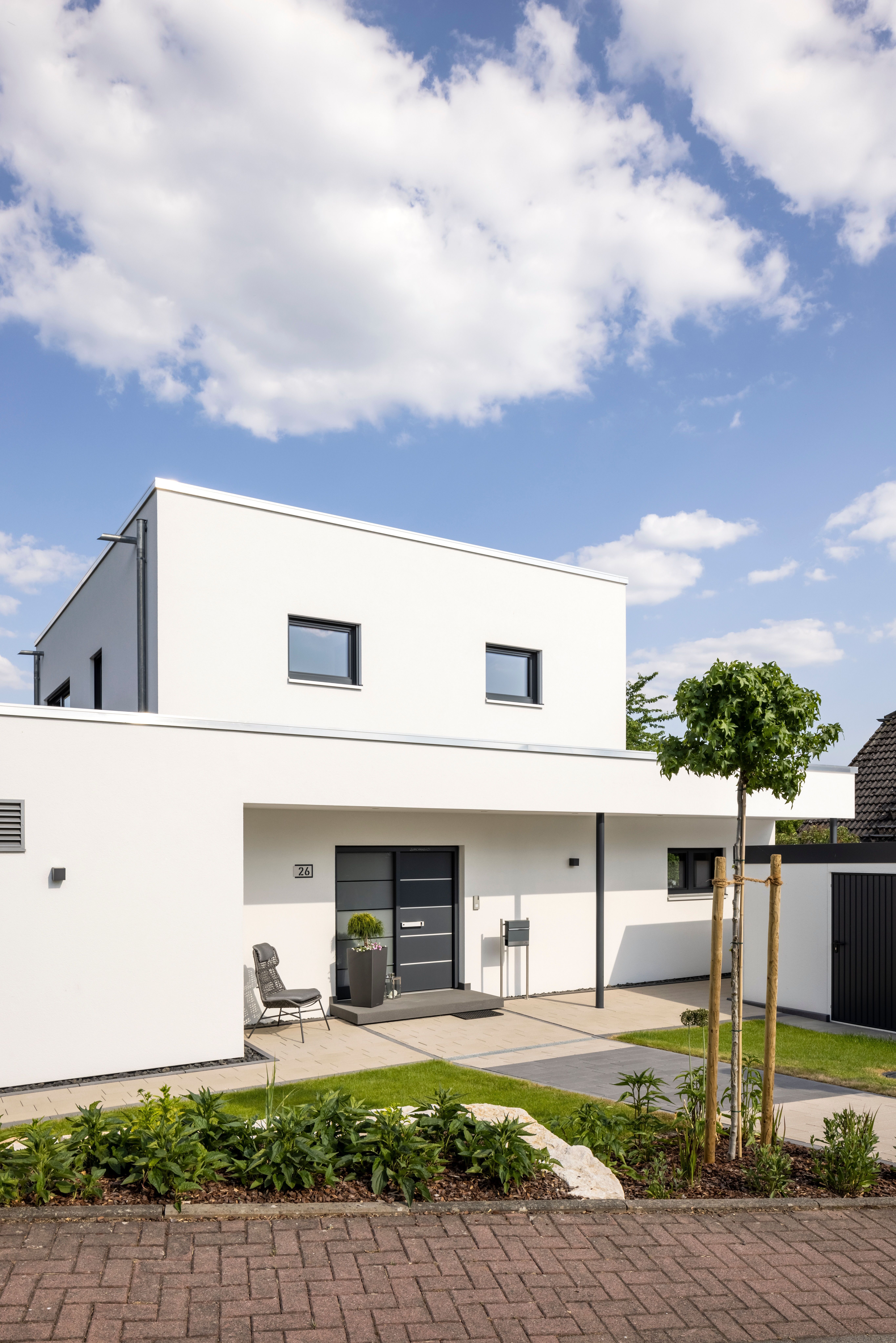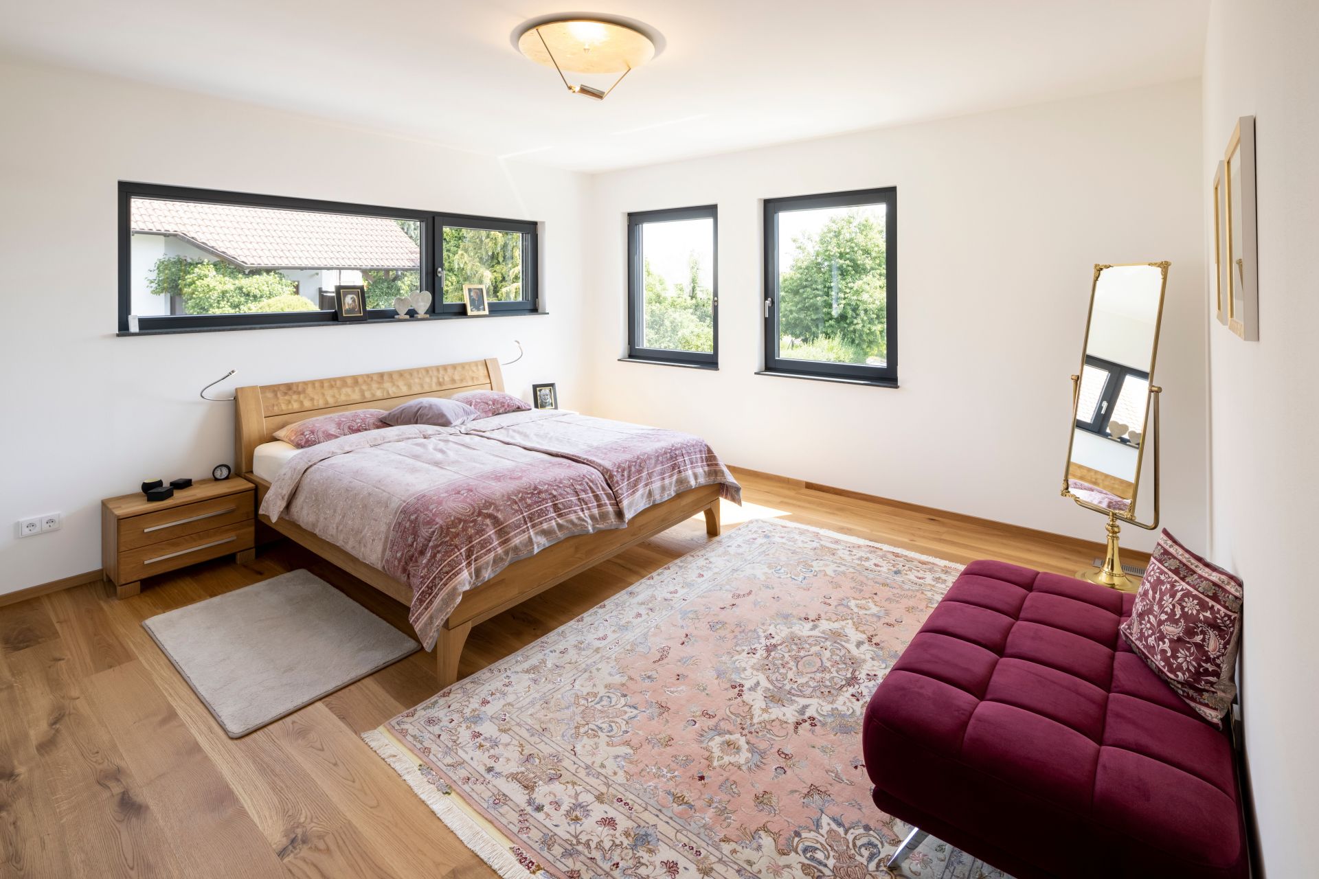 Klare Linien, großzügige Fensterflächen und ein flexibles Raumkonzept machen dieses frei geplante Haus zu einem Zuhause mit Stil, Funktionalität und langfristiger Zukunftsfähigkeit.