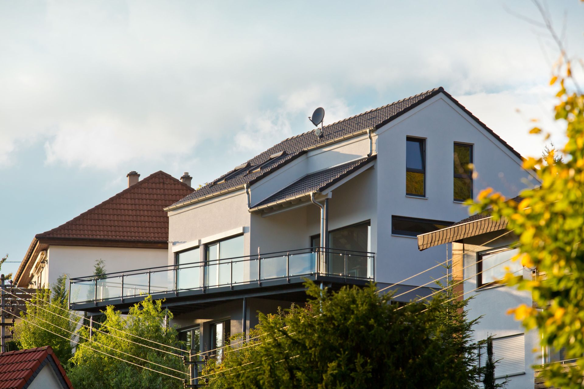 Ein frei geplantes Architektenhaus – mit 166 m² Wohnfläche, Satteldach, großzügigen Glasflächen, Balkon und überdachter Terrasse in markanter Hanglage.